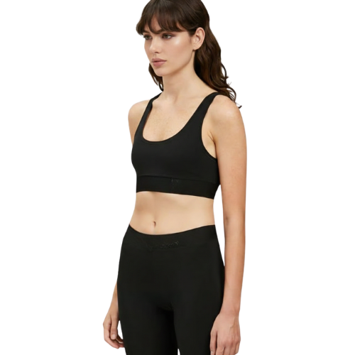 $79.00$79.00/This black sports bra combines a streetwear edge with a functional athletic design. It features a traditional scoop neckline and wide, supportive straps Design: Bold elastic...