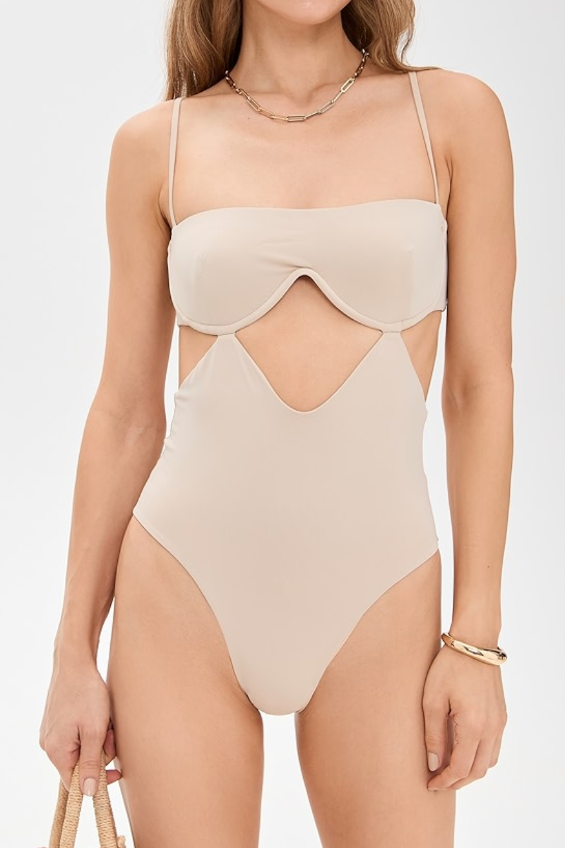 • Minimalistic design with contemporary style. The  One-Piece offers a structured underwire bust for support and a keyhole cut-out details at the waist, accentuating your silhouette while...