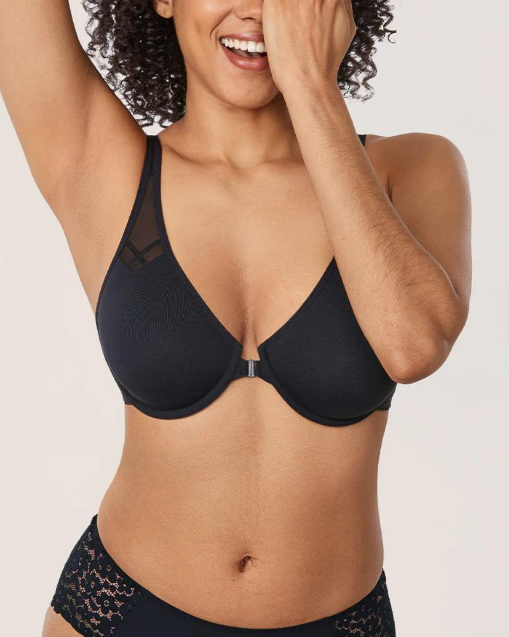 $25.00$25.00/This front-close underwired bra features seamless fabric and racerback design. Mesh window details above cups are a great decoration. Low center front closure design makes it...
