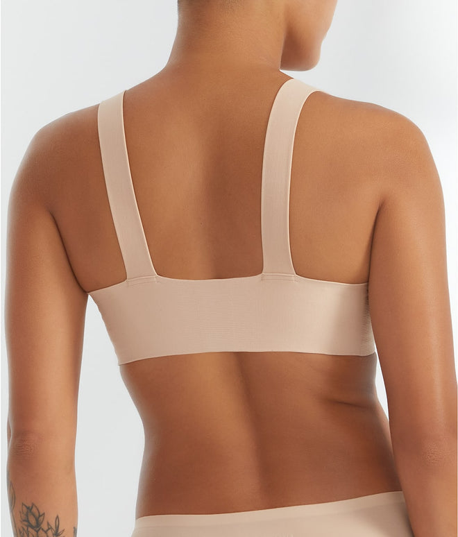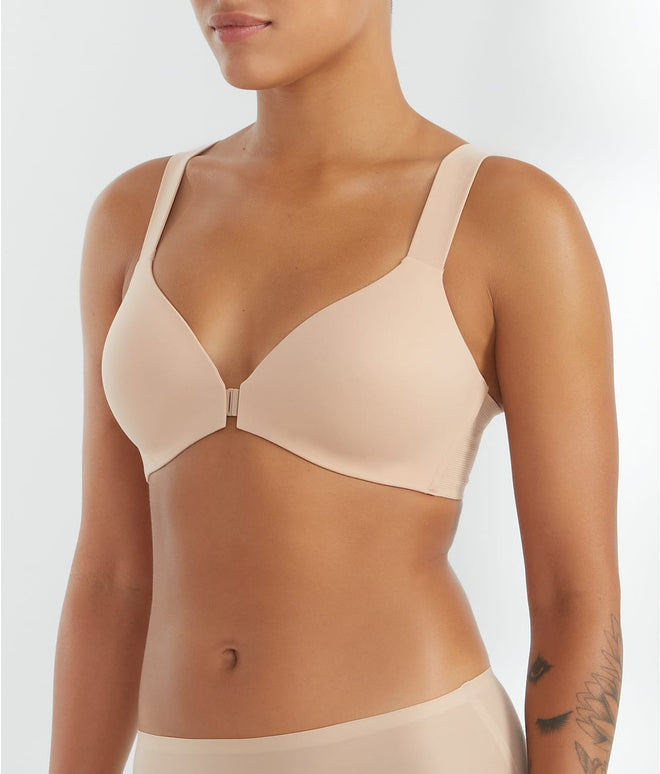 "Oh-so comfortable, elastic-free wire-free T-shirt bra. Smart Straps mold to the body for a dig-free fit