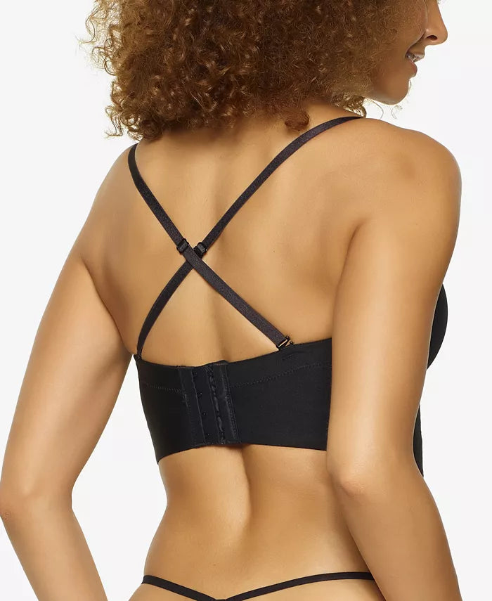 Seamless longline convertible bra that can be worn with or without straps. Stay-put technology allows for a lower-back that accommodates bare back ready to wear styles.