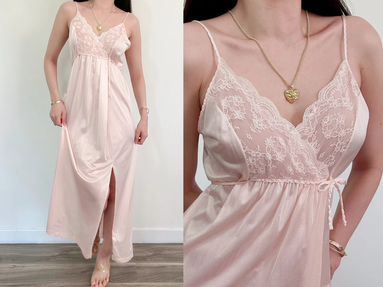Vintage Pink & Lace Bust Detailing Slip Dress, Lingerie